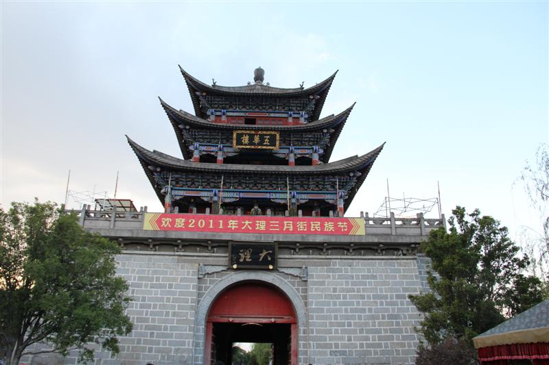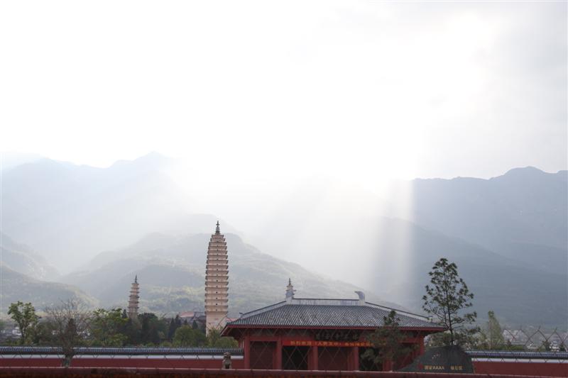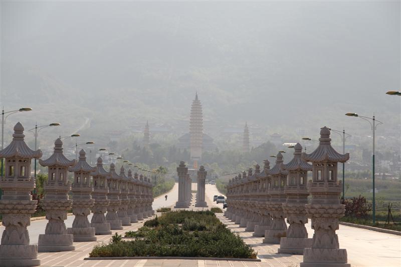 เจดีย์ของวัด ฉงเซิง เป็นเจดีย์เหลี่ยม 3 องค์โบราณ โดยมีประวัติประมาณ 1,800 ปี เจดีย์องค์ประธาน มีลักษณะสี่เหลี่ยม ชื่อ เฉียนซุนถ่า สูง 70 เมตร มี 16 ชั้นเจดีย์สามองค์ (ซานถ่า) แห่งเมืองต้าลี่ ถือได้ว่าเป็นสิ่งก่อสร้างขนาดใหญ่ในสมัยน่านเจ้า เริ่มก่อสร้างขึ้นเมื่อปี ค.ศ.836 ในสมัยราชวงศ์ถัง ในเจดีย์มีบันไดแต่ปัจจุบันชำรุดหมดแล้ว ตามบริเวณสองข้างของเจดีย์องค์หลักมีเจดีย์ขนาดเล็กสร้างอยู่เคียงกันด้านละแห่ง เจดีย์สามองค์นี้มีรูปทรงที่สอดรับกลมกลืนกันโดยใช้เวลาในการก่อสร้าง รวม 40 ปี จึงสร้างเสร็จเรียบร้อย ปัจจุบันเป็นสัญลักษณ์ของเมืองต้าลี่
