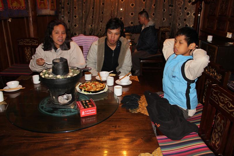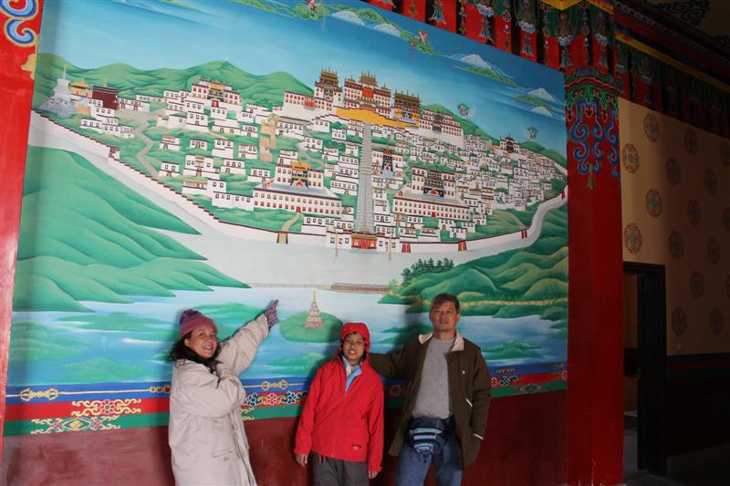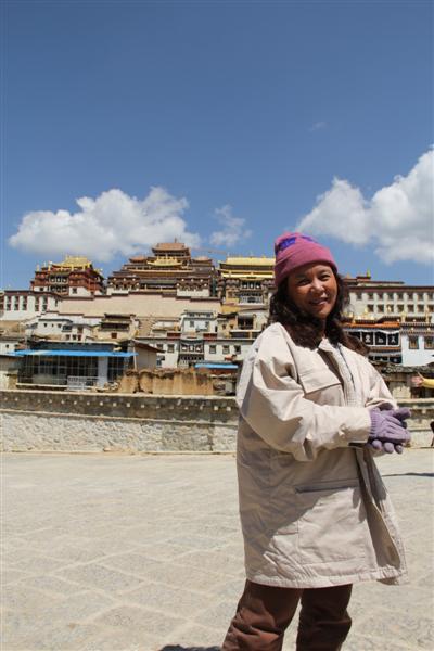 ถ่ายรูป 2-3 รูป แล้วให้ Taxi พาไปที่วัดลามะ Songzhanlin ที่นี่ค่าเข้าคนละ 85 Yuan และมีส่วนลดคนละ 30 Yuan สำหรับเด็ก และผู้ที่มีบัตรนักเรียน/นักศึกษา เหลือคนละ 55 Yuan