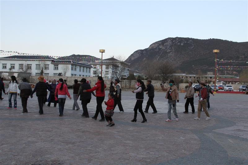 ด้านหน้าวัดจะเป็นลานใหญ่ ประมาณ 1 ทุ่มก็จะมีชาวบ้านมารวมตัวกันเต้นรำ เราจะไปร่วมกับเขาด้วยก็ได้