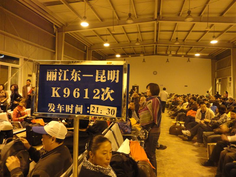 เราจองตั๋วรถไฟไปคุนหมิงเที่ยว K9612 ออก 2130 โดยจะไปถึงคุนหมิง 0605 เช้าของวันที่ 16 เมษายน ค่ารถไฟแบบตู้นอน 3 ชั้น ในแต่ละห้องจะเป็น 2 แถวรวม 6 เตียง ราคาคนละ 142 Yuan รวมค่าฝากซื้อ-ส่งอีก 10 Yuan เป็น 152 Yuan 760 Baht ต่อคน