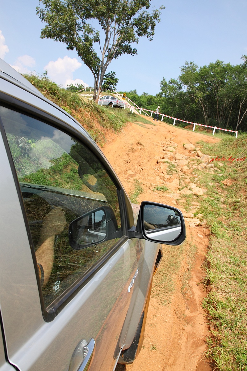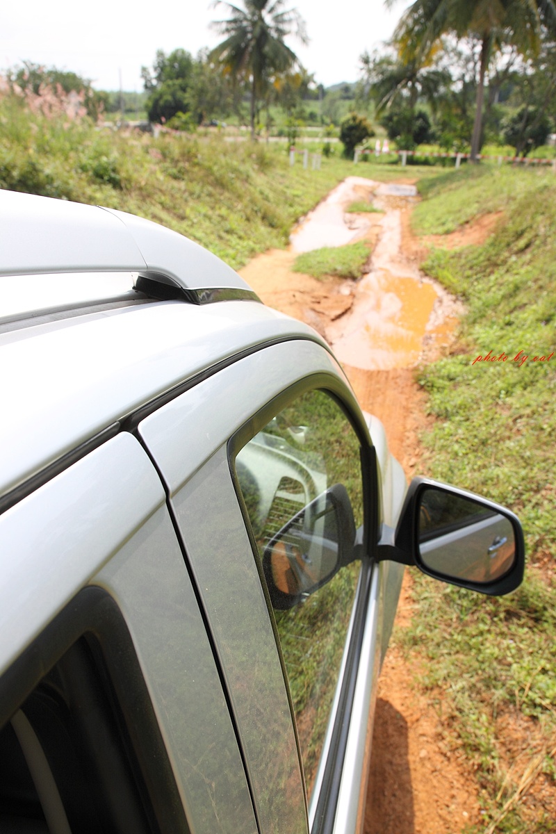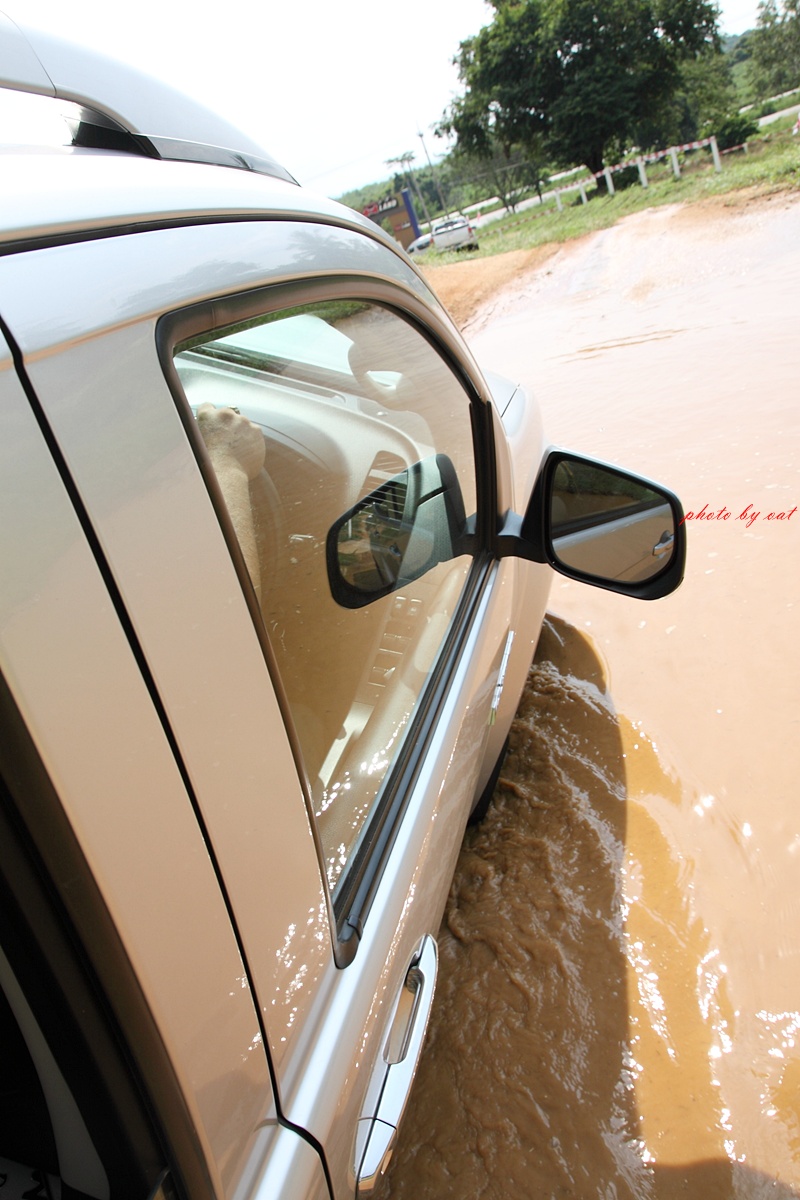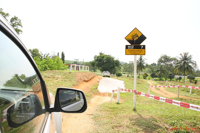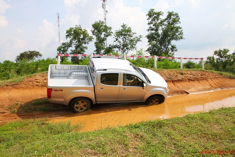 ต้องเอียงรถด้านซ้ายขึ้นเนินและด้านขวาจะแช่อยู่ในน้ำประมาณ ครึ่งล้อครับ