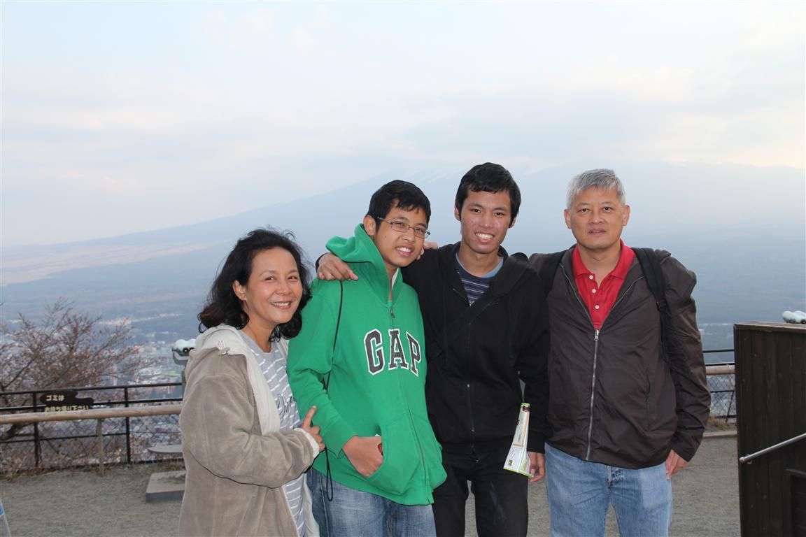 Thu 10 Apr 2014 วันที่ 6 ของการเดินทาง แผนการคือ ไปชมฟูจิ แล้วออกเดินทางสู่ Hakone ตื่นเช้าขึ้นมา เปิดหน้าต่างออกมา จ๊ะเอ๋กับฟูจิ มาเมื่อไหร่ก็ไม่ยอมบอก