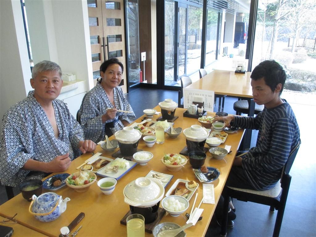 หลังจากนั้น ก็กลับมาจิบชา สบายอารมณ์ เราไม่ได้จองอาหารเย็นที่โรงแรมไว้ เลยต้องออกไปข้างนอก เขาก็ offer ไปส่งที่ร้านอาหาร แต่เวลาไม่ตรงกับเรา จึงเดินไป แต่กลายเป็นว่าเดินยังไงก็ไม่ถึง เลยต้องไปอาศัย shuttle bus ของโรงแรมอื่นที่อยู่ข้างทางให้ช่วยแวะไปส่งที่ร้านอาหาร ขากลับอาศัย Taxi ได้สาเกร้อนไป 1 ขวด พอให้บรรยากาศดูเพลินๆได้ ก่อนกลับมานอน