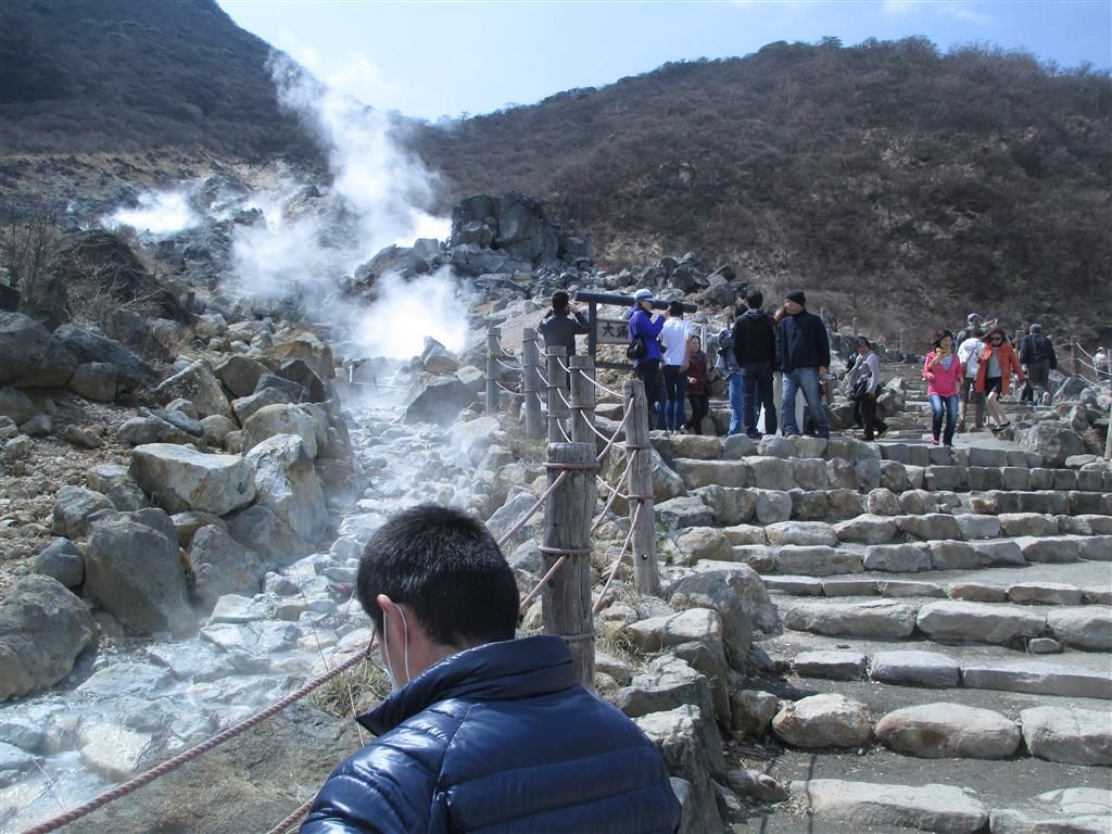 จุดแรกที่มาแวะ Owakudani ที่เป็นแหล่งภูเขาไฟ มาน้ำพุร้อนที่มีกำมะถันสูง เวลาต้มไข่ จะทำให้เปลือกไข่เปลี่ยนเป็นสีดำ