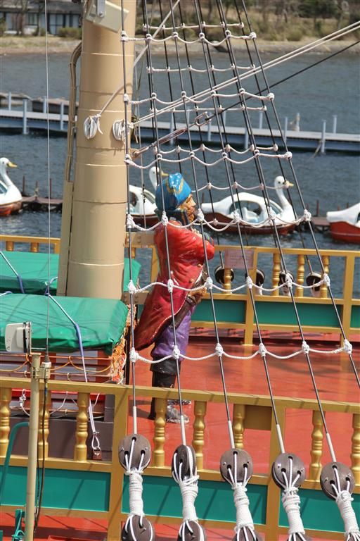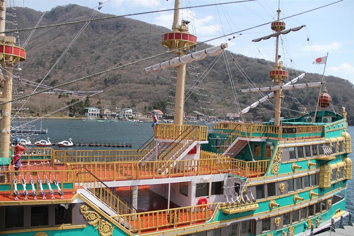 ทะเลสาบนี้เรียกว่า Ashi กลาสียังใช้โทรศัพท์มือถืออยู่ ไม่รู้สลัดลำนี้ไปปล้นจากใครมา