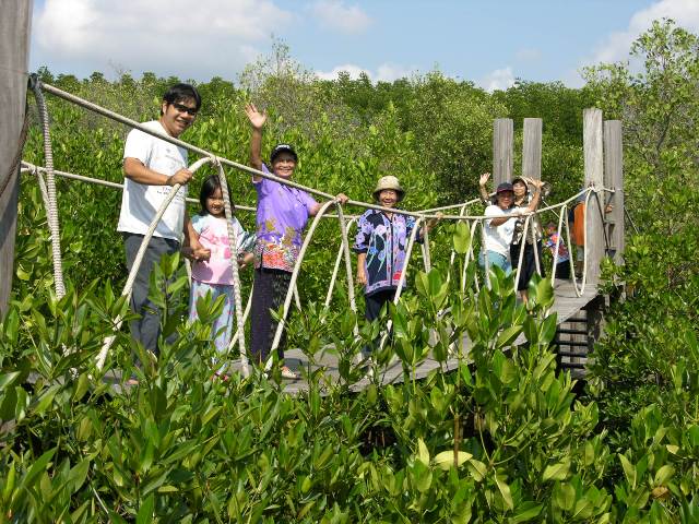 แล้วก็ไปเดินดูศูนย์ศึกษาป่าชายเลน ระยะทางรวม 1.6 กม ที่เห็นเป็นต้นโกงกาง