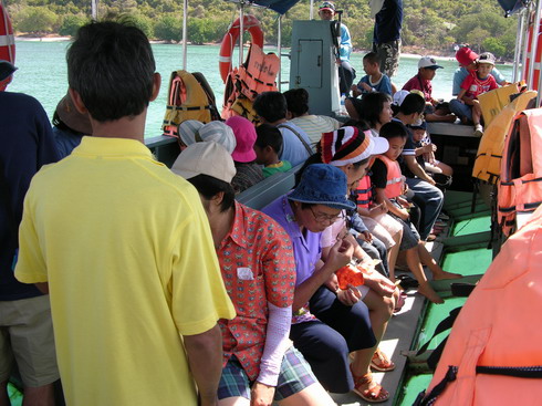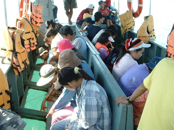 หลังจากออกเรือได้ซักพัก เด็กเริ่มหงอย เพราะให้นั่งหัวเรือ ตากแดดไป ส่วนผู้ใหญ่นั่งในร่ม นัยว่าให้เด็กได้วิตามินดี เพื่อความแข็งแรง