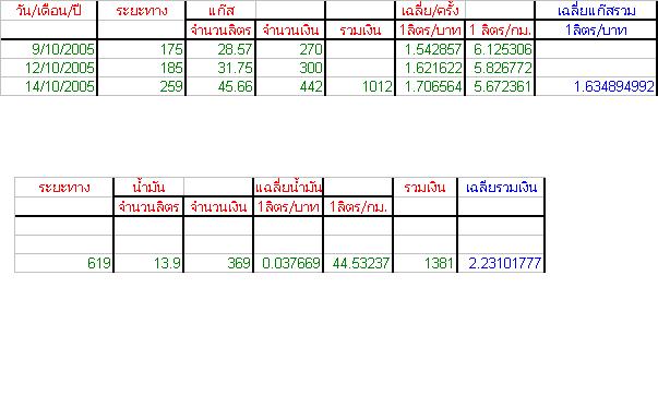 1 ลิตร/บาท เป็น 1กม./บาท (หมายถึง1 กม.ใช้น้ำมันไปกี่บาท ?)