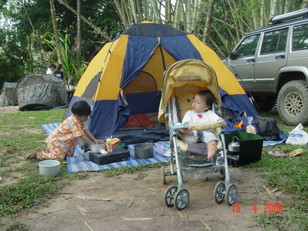 ใช้เวลาเดินทางมาเรื่อยๆแบบไม่รีบร้อนประมาณเกือบ 2 ชั่วโมงขอตัดมาถึงจุดกางเต้นท์เลยแล้วกัน เพื่อความรวดเร็ว