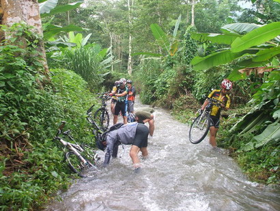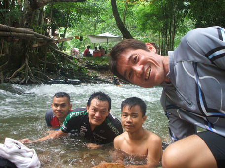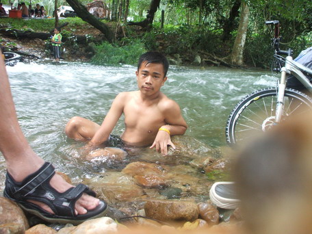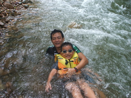 ตรงที่ยืนไม่ลึกเท่าไหร่ แต่ใกล้ๆต้นไม้... เอื๊อก...ตัวใครตัวมัน