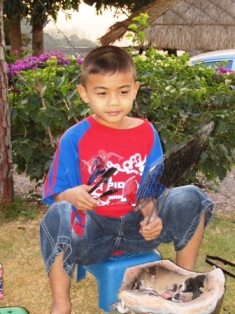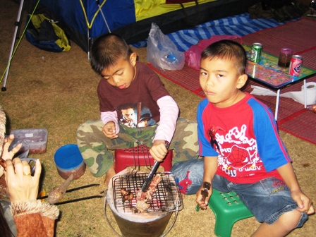 แล้วก็ให้เจ้านายคนโตใช้วิชาลูกเสือสำรอง ช่วยก่อไฟย่างกับแกล้ม