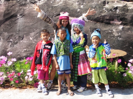 ก่อนเข้าหมู่บ้านเราเจอชาวบ้านหัวใส นำผักและดอกไม้จากภูเรือมาจัดสวนให้นักท่องเที่ยวมาดูและถ่ายรูป เก็บคนละ 20 บาท