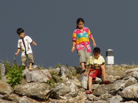 เด็กๆบอกไม่มีอะไรทำ ปีนสันเขื่อนเล่นดีกว่า