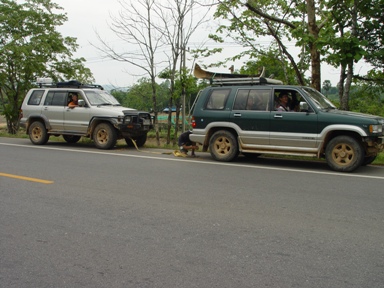 เที่ยวเพลินเกินไป หมดทั้งแก๊สทั้งน้ำมัน ทั้งๆที่เหลืออีกแค่ 4 โลก็ถึงปั้มแก็สแล้ว เลยต้องใช้บริการเฮียบุญหนักช่วยลาก หลังจากลากรถเฮียบุญหนักในป่ามา 2-3 ครั้ง