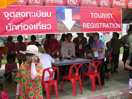 ลงทะเบียนเสร็จก็ได้ป้ายมาคล้องคอ นัยว่าถ้าจะทำอะไรเปิ่นๆ จะได้ไม่มีใครว่า