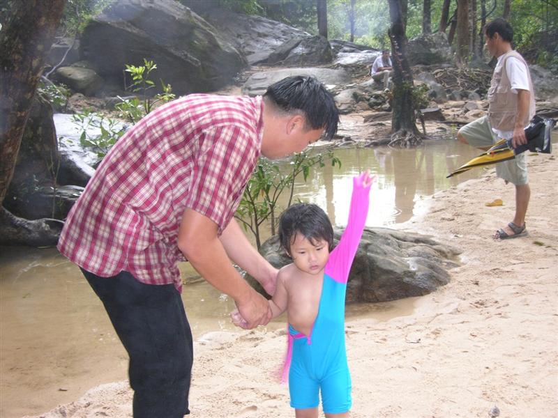 กำลังจะพาเด็กเล่นน้ำที่แก่งกะเลา ฝนมามืดเลยวงแตก (กลัวเปียก)