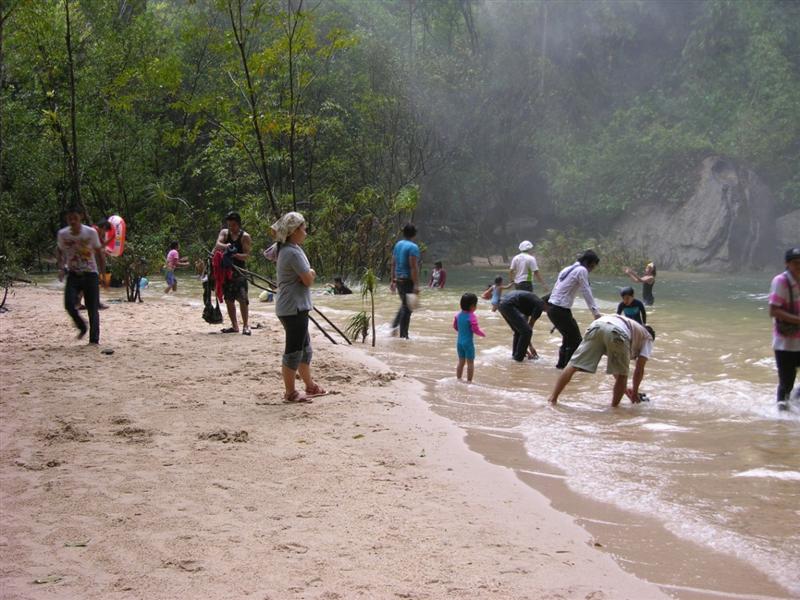 ด้านล่างของน้ำตก จะเป็นเหมือนหาดทราย เดินเล่นสบายๆ ไม่อันตราย
