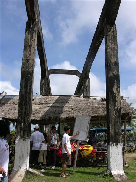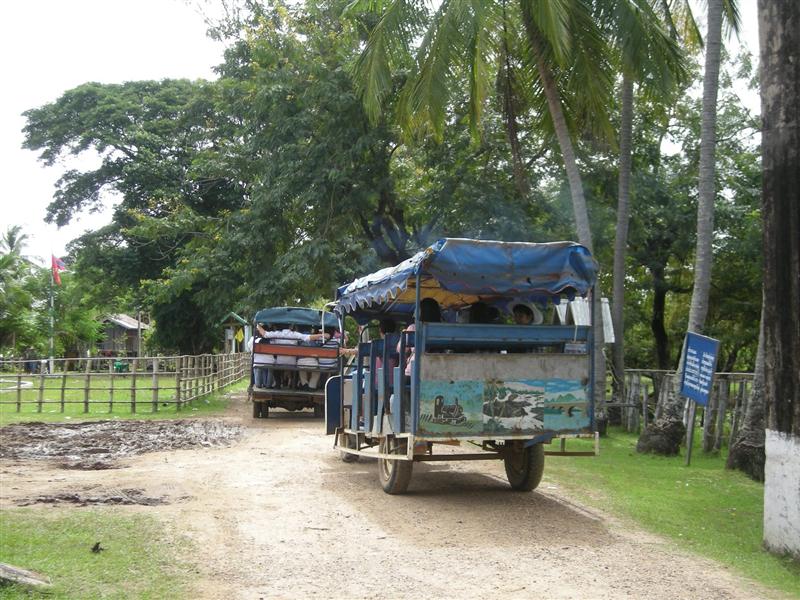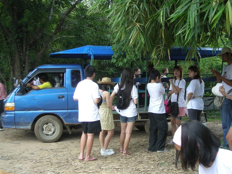 นั่งเรือมาแล้ว มาต่อสองแถวอีกทอด ทรหดกันจริงๆ ตอนนี้ระหว่างรอรถ