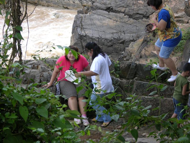 จุดต่อมาของเช้านี้คือ น้ำตกหลี่ผี รถที่เห็นนั่น ทะเบียนไทยทั้งนั้น เที่ยวไปเที่ยวมา นึกว่าอยู่เมืองไทย เพราะเจอแต่คนไทย
