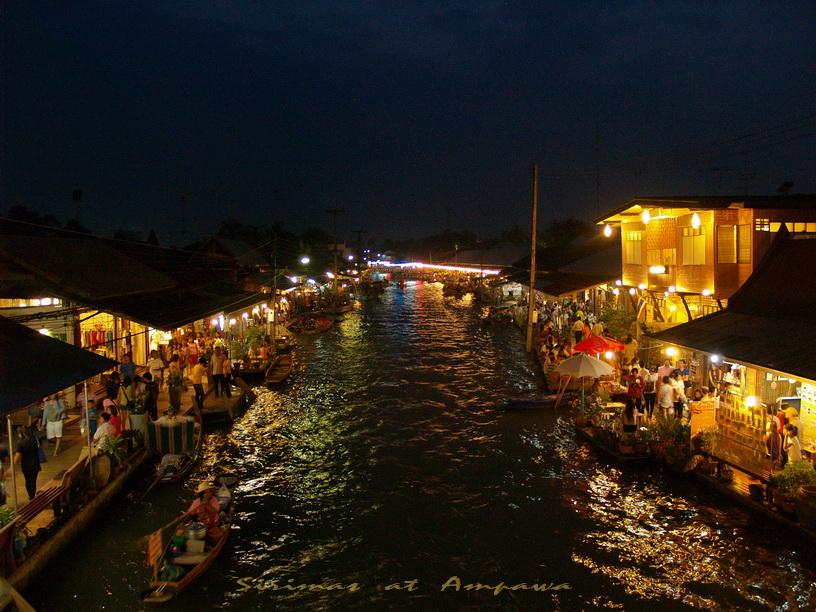 แล้วก็มาถึงในช่วงหกโมง ผู้คนมากหน้า รถติด เลียบคลอง ริมน้ำ ล้วนแล้วแต่นักท่องเที่ยวจากเมืองกรุงกับต่างชาติ ที่วันนี้คึกคักมาก เนื่องจากเป็นลองวีคเอน จึงแน่นกว่าที่เคยไปมา