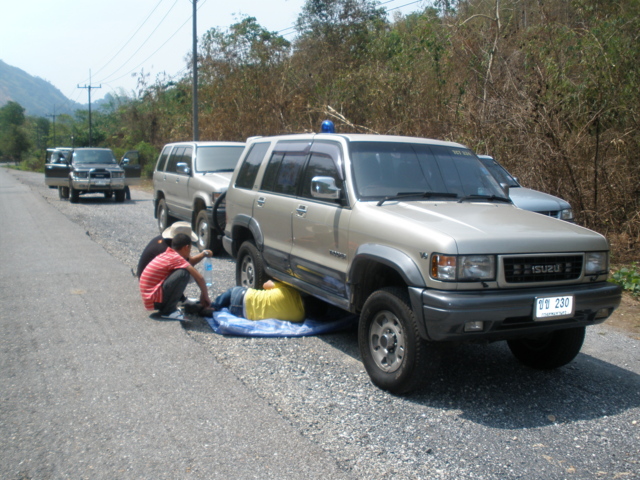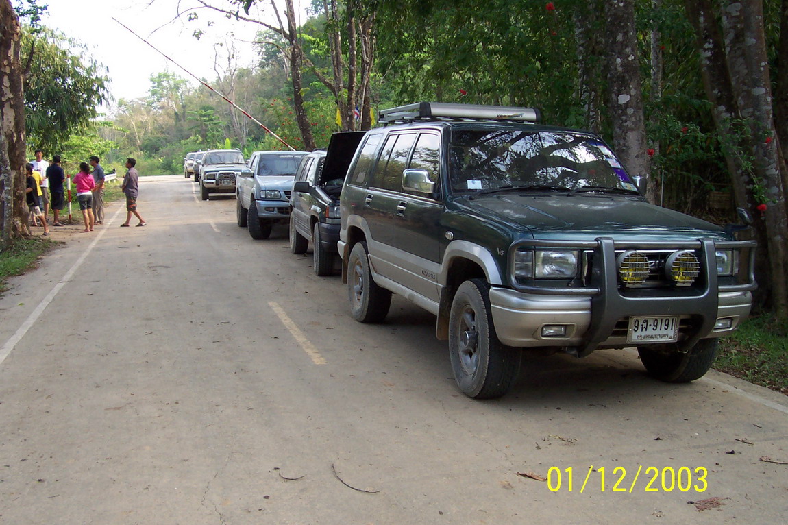 เช้าวันเสาร์ที่ 1 พค ฟรีรันกันไปมุ่งหน้าทองผาภูมิ ขาไปขอให้แวะเติมแก้สกันก่อน ปั้มแกสอยู่ที่ หลัก กม 100 ก่อนถึงน้ำพุร้อนหินดาด ทองผาภูมิ หลังจากเติมแกสแล้ว ให้ขับมุ่งหน้าสู่ทองผาภูมิไปอีกประมาณ 20 โล จุดนัดพบอยู่ที่ปั้มน้ำมันด้านซ้ายมือ (จำไม่ได้ว่าปั้มยี่ห้ออะไร แต่เป็นปั้มแรกด้านซ้ายมือ) นัดพบกันเวลา 0800น ที่ปั้มนี้จะมีข้าวแกงอยู่ ขอให้จัดการกับอาหารเช้า และซื้อข้าวกล่องสำหรับกลางวันด้วย