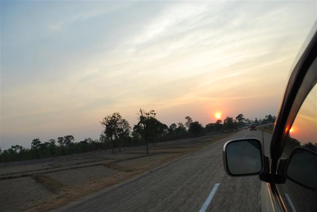 รุ่งเช้าณ.หน้าโรงแรมหลายดาวที่ขนส่งท่าแขก