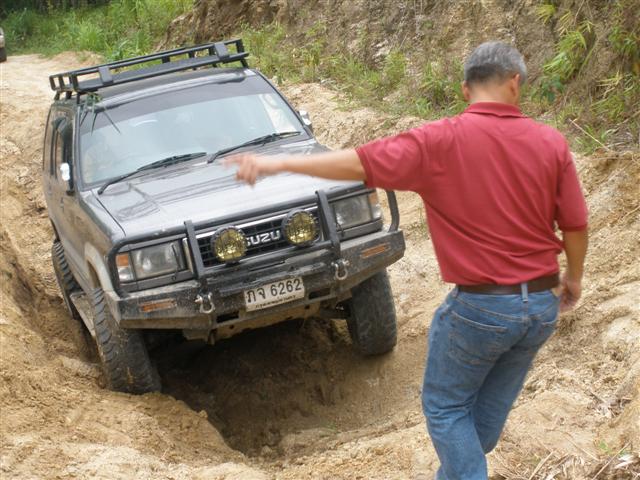 คุณโก้หายไปประมาณเกือบๆๆจะครึ่งชั่วโมงแกบอกว่าต้อนไม้กิ่งเท่านี้(เล็กนิดเดิยวพี่ตัดปลายๆๆก็ไปได้เเล้ว) แต่ต้องผ่านล่องนี้ไปกันก่อน ส่งคุณวิชาญไปคันเเรก