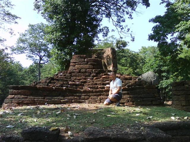 ที่ผมนั่งคุกเข่าอยู่ ด้านหลังก็พระพุทธรูปใหญ่นะครับ