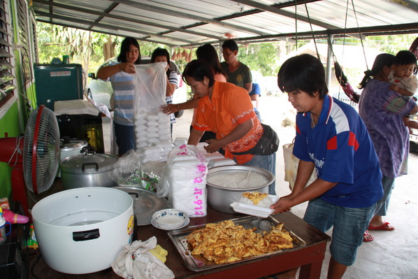 ชาวบ้านช่วยกันลำเลียงของครับ
