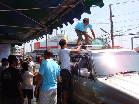 เสร็จสิ้นภาระกิจไปหนึ่งจุด...รอรถใหญ่มาถ่ายของเข้าไปข้างในครับ