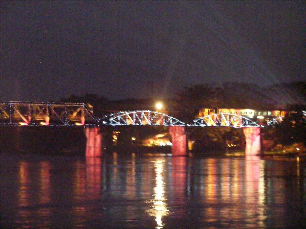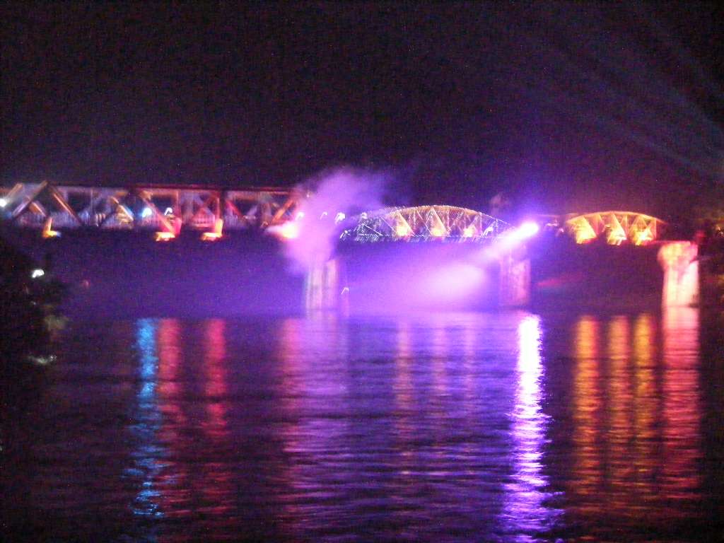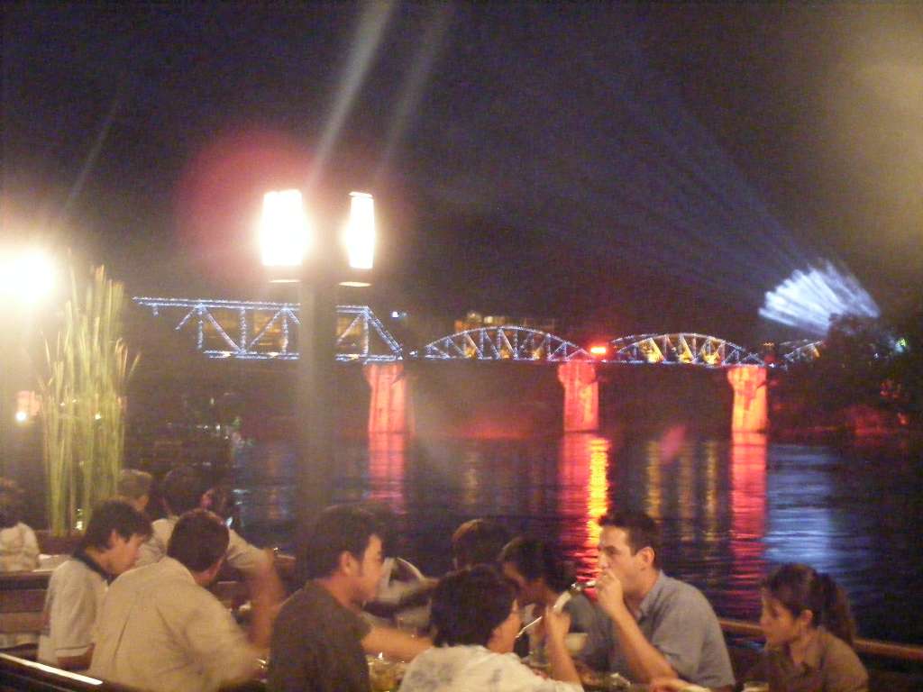ทานอาหารกันไปมองดูบรรยากาสบนสะพานแสงสีเสียงแบบนี้สวยงามมากครับ