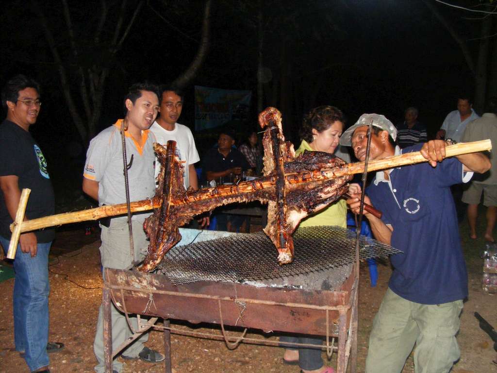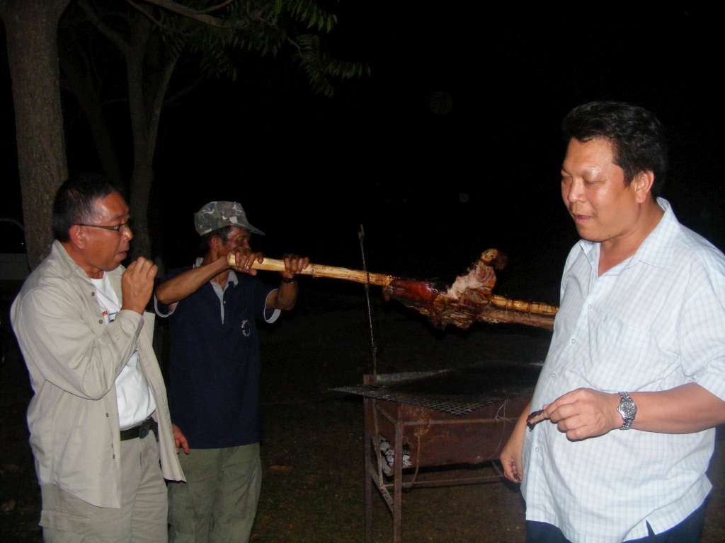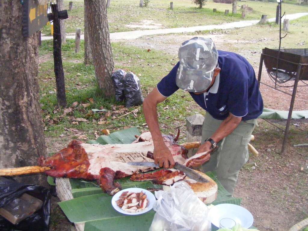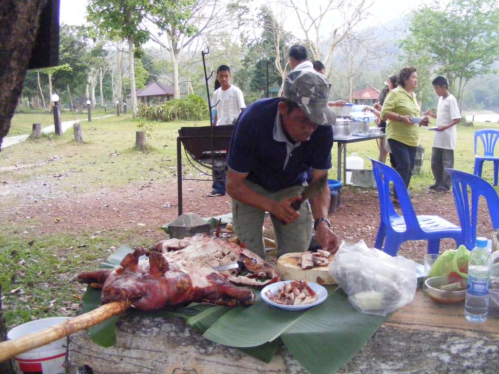 พี่พรานแหลมกำลังแล่หมูหัน ซึ่งเป็นเมนูพิเศษในค่ำคืนนี้ครับ