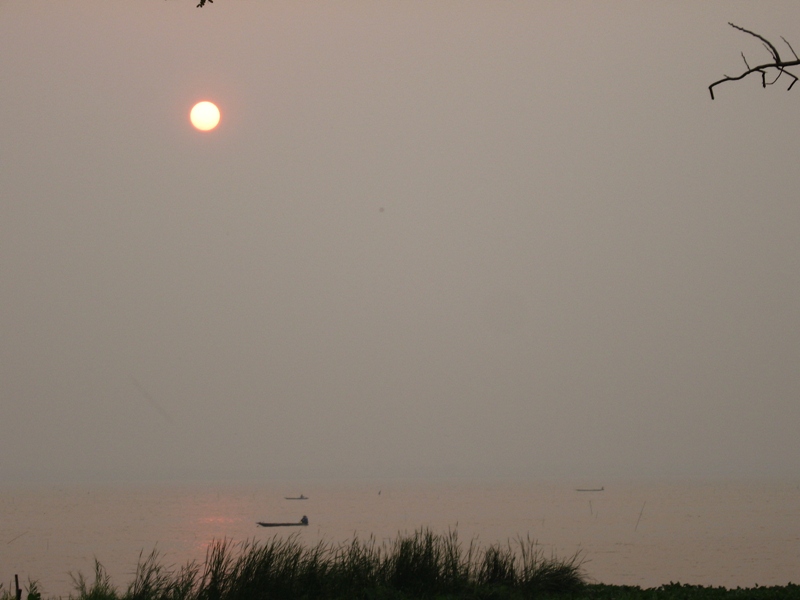 เพิ่งจะสี่โมงเย็น แต่ดวงอาทิตย์เป็นสีอย่างนี้ซะแล้ว เป็นเพราะควันที่เผาป่ากัน มองไม่เห็นอีกฝั่งนึง