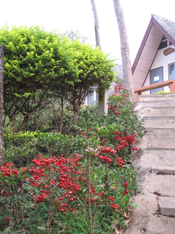 ดอกสีแดงๆ ข้างบันได้นั่นคือเมล็ดกาแฟพันธุ์อาราบิก้าครับ