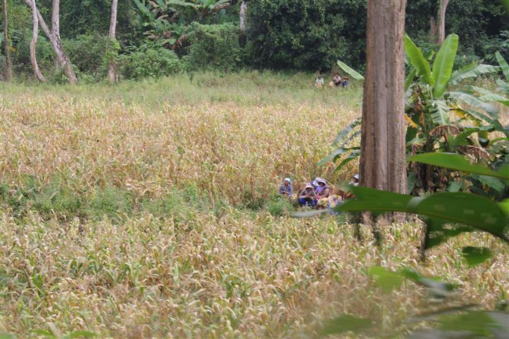 ขับผ่านไปเรื่อยๆ จะเจอชาวบ้านกำลังทำงานในไร่ ซึ่งตอนนี้กำลังเป็นฤดูเก็บเกี่ยวข้าวโพด