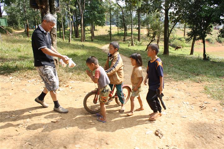 เด็กๆที่เดินเล่นอยู่แถวนั้น ไล่กันมาตั้งแต่อนุบาล 1, อนุบาล 2, ป 2 และ ป 4 ปกติโรงเรียนข้างในจะสอนถึง ป 6 หลังจากนั้นพ่อ-แม่จะส่งไปเรียนในจังหวัด โดยไปอาศัยเป็นเด็กวัด หรืออยู่อาศัยกับญาติ (ถ้ามี)