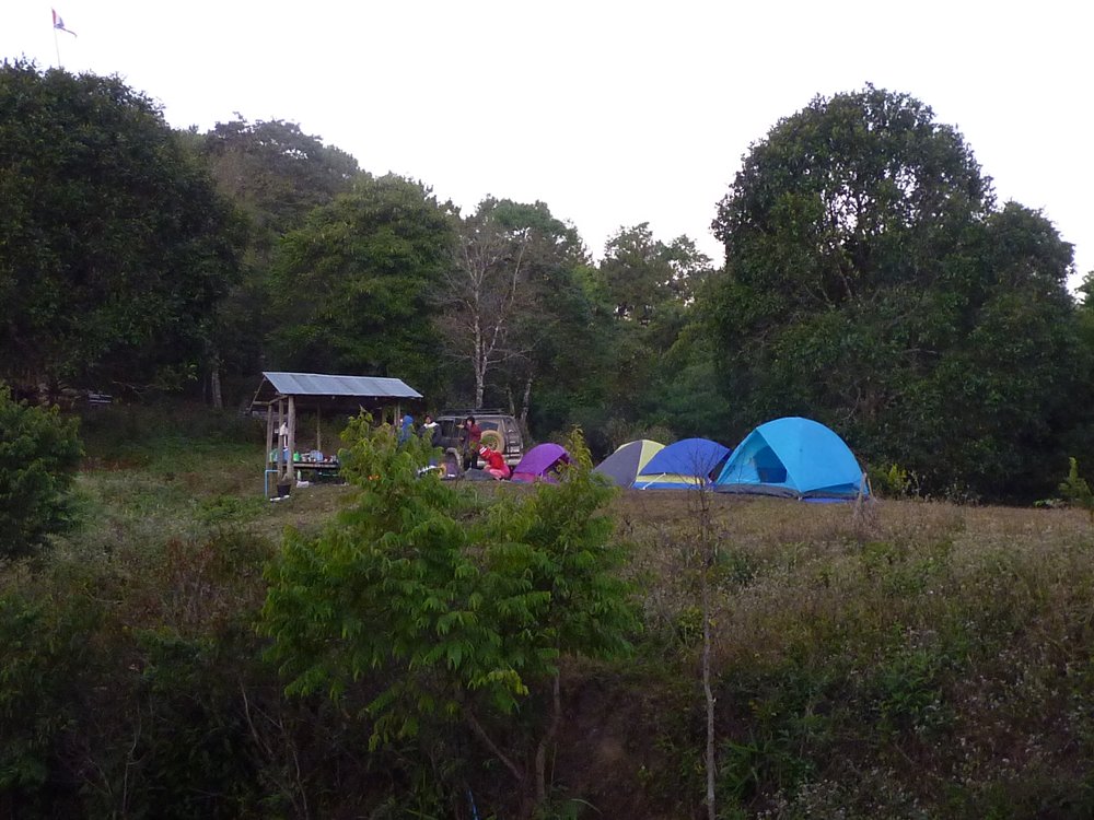 ลานกางเต๊นท์บนดอยค้ำฟ้า อยู่ระหว่างยอดเขา 2 ลูก มีน้ำใช้ด้วย แต่ต้องใช้แบบประหยัด เป็นน้ำที่เจ้าหน้าที่ขนใส่รถขึ้นมาเทใส่แท๊งค์ให้นักท่องเที่ยวใช้