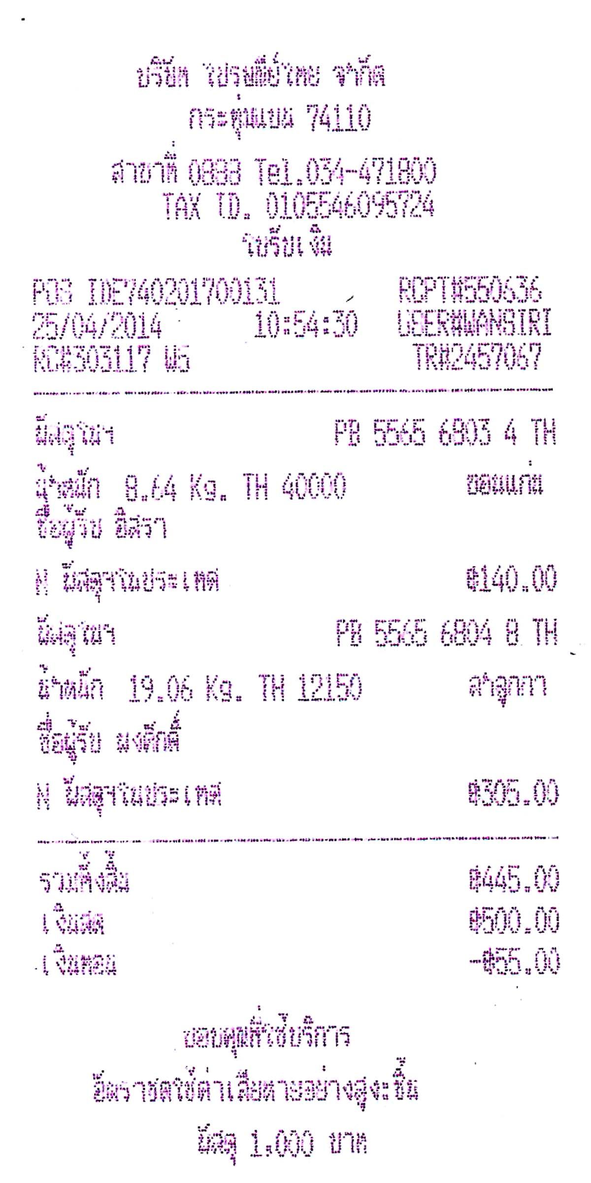 ฝากรูปใบเสร็จให้ พี่สมศักดิ์ ขอบคุณครับ