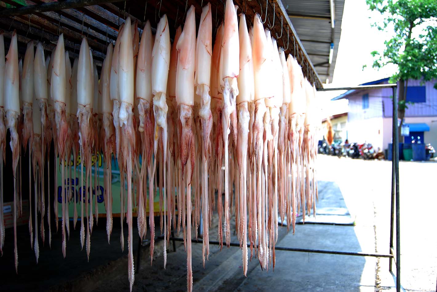 ต่อด้วยของแห้งปลาหมึกแดดเดียว(ที่นี่แดดแรงจริงๆแดดเดียวก็เกือบสุกแล้ว)