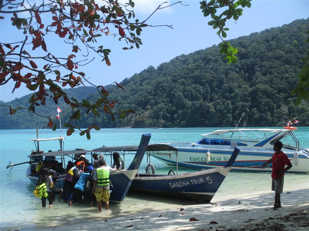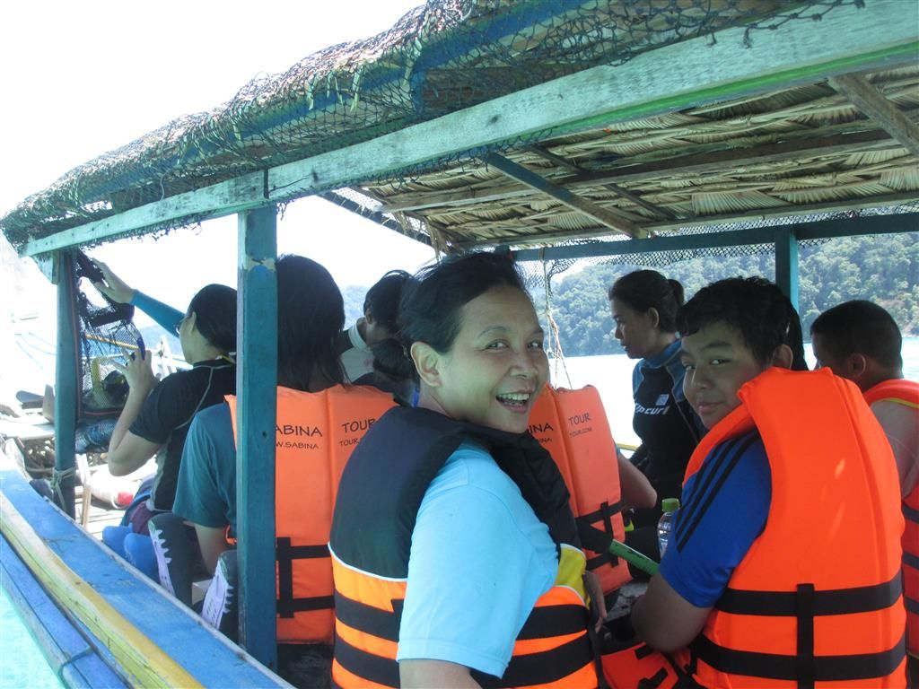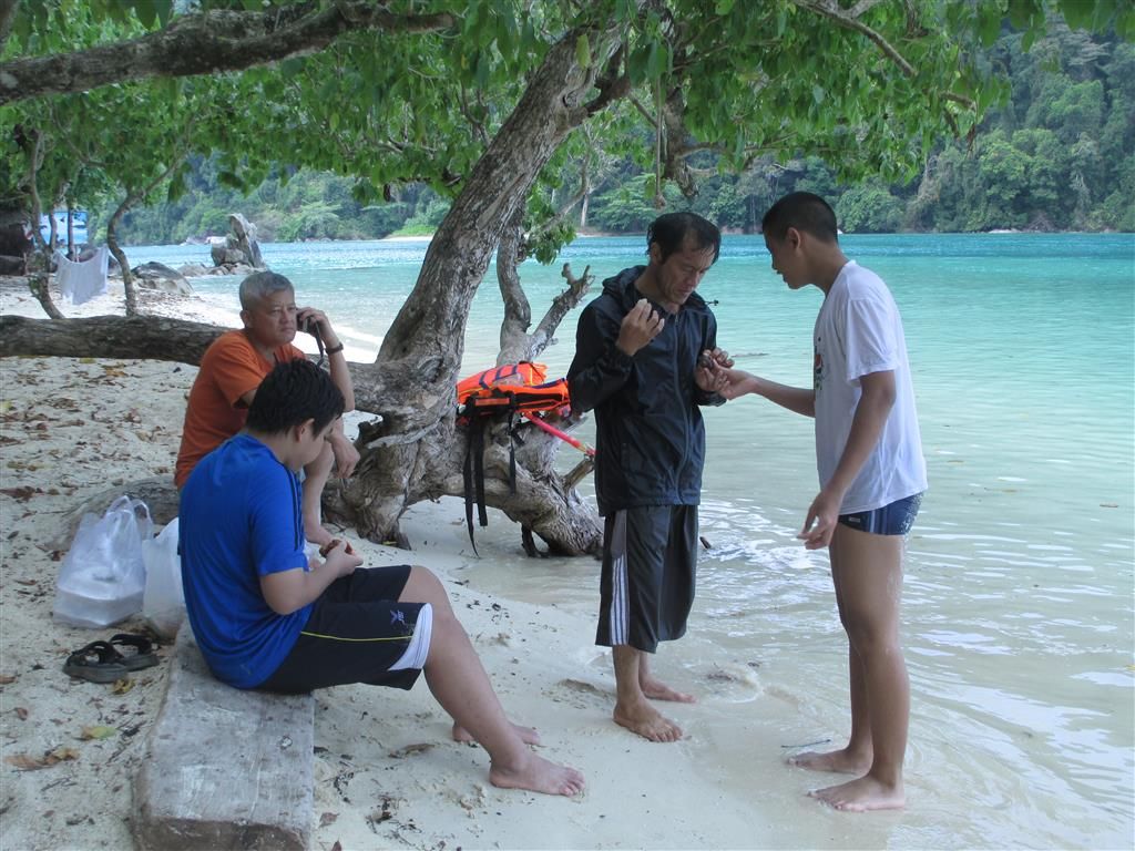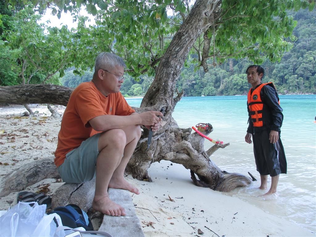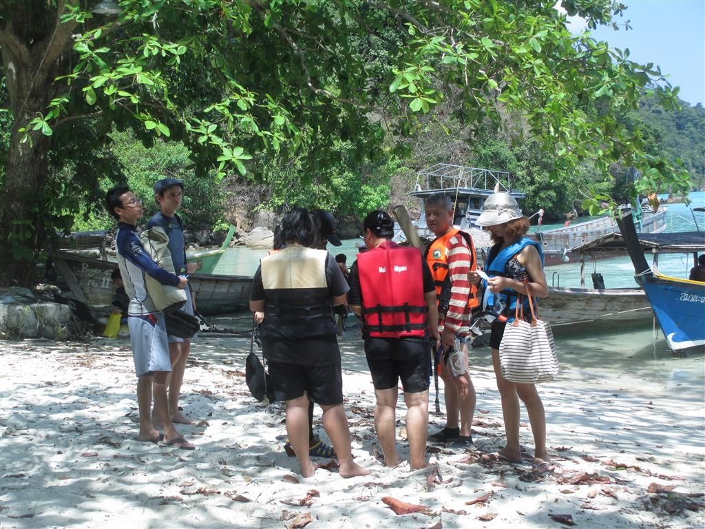 ชุดนี้ เป็นนักท่องเที่ยวที่มากับซาบินาทัวร์โดยเฉพาะ โปรแกรมดำน้ำอาจจะไม่ตรงกับที่อุทยานฯ จัด แต่ก็ใกล้เคียงกัน ไปกับทัวร์ อาจจะมีข้อดีกว่าเล็กน้อย คือเขาจะมีเจ้าหน้าที่ลงไปดำน้ำกับเราด้วย และอาจชี้ให้สังเกตุสิ่งที่เราอาจไม่รู้ว่าคืออะไร