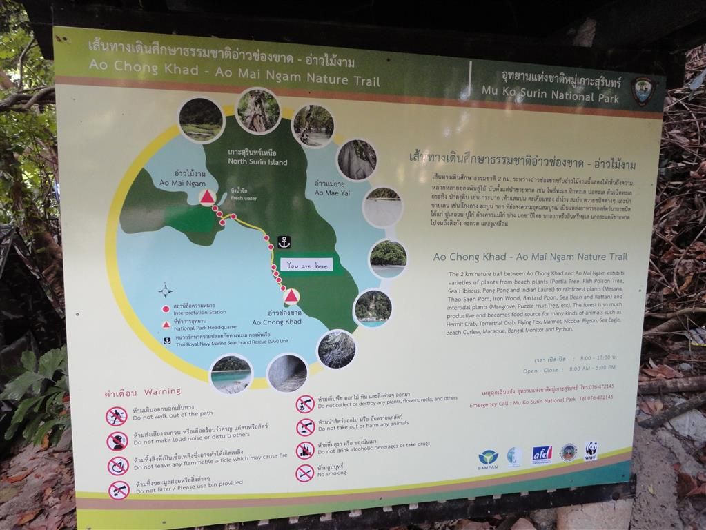 ใกล้กับที่กางเต้นท์ จะมีเส้นทางศึกษาธรรมชาติ จากอ่าวช่องขาด ไปที่อ่าวไม้งาม ผมเดินไปนิดเดียว เลยไม่รู้ว่าเป็นไง แต่เห็นคนที่เดินไปบอกสายมาก