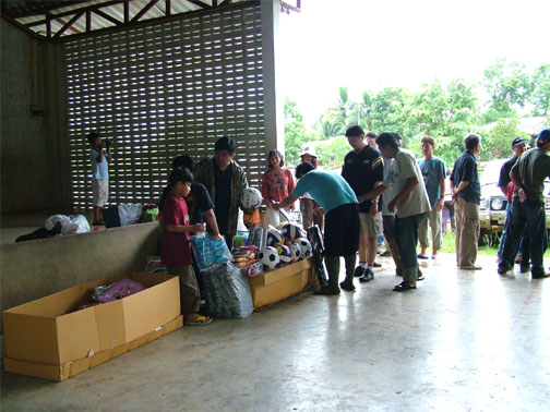สิ่งของที่ได้รับบริจาคมา กำลังรอการจัดให้เป็นระเบียบ