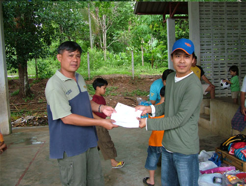คุณครูบุญเลิศ มาตรวิจิตร เป็นตัวแทนของโรงเรียนบ้านไร่ป้า รับเงินบริจาคเงิน
