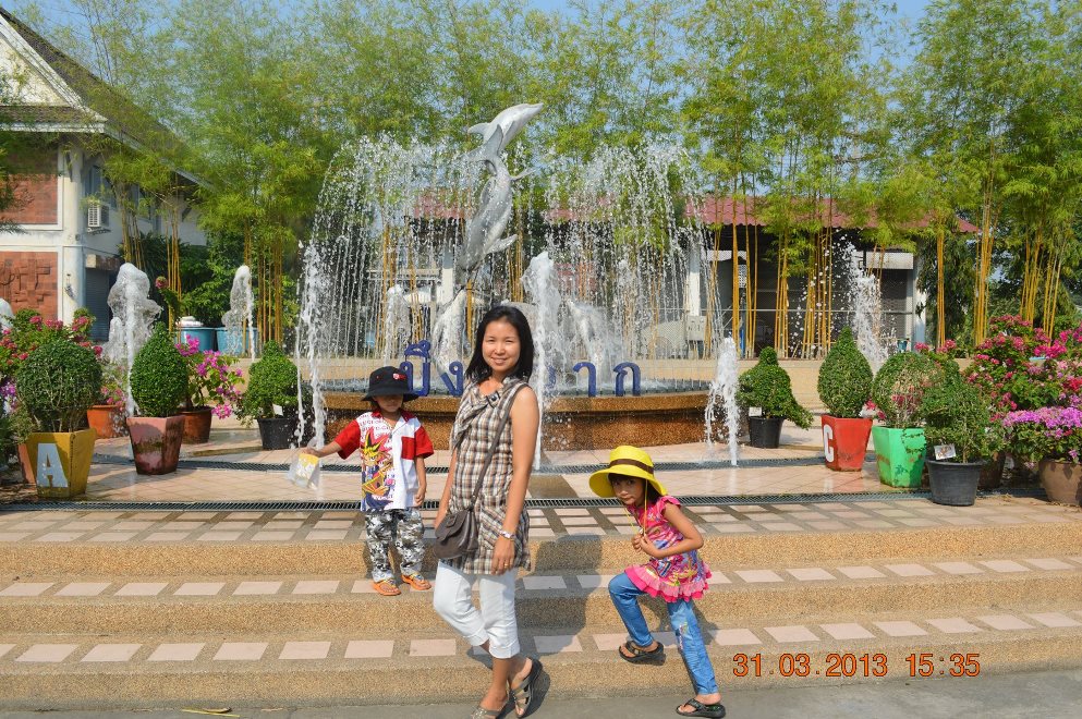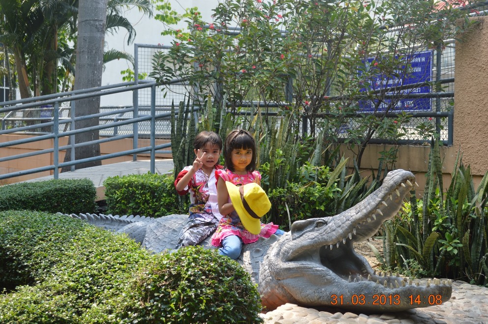 มาอีกจุดที่เป็นสวนปลา เด็กๆวิ่งขึ้นไปขี่จระเข้ก่อนเลย แสบนะเจ้าสองคนนี้