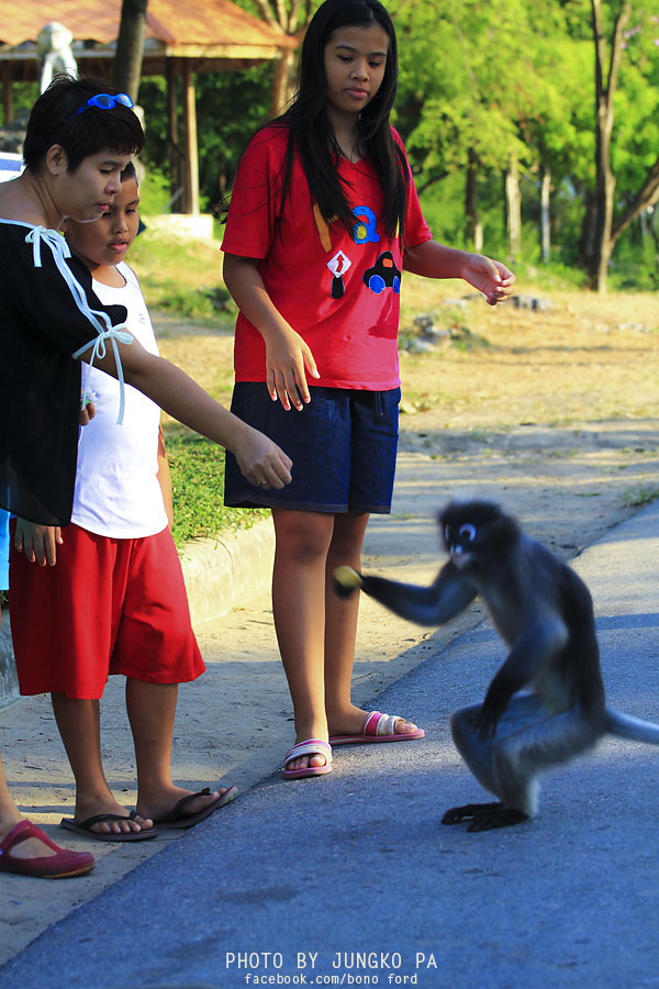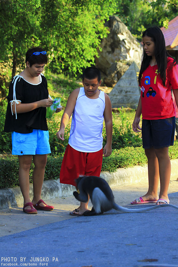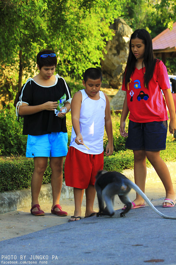 ตอนแรกเด็กๆ ก็กลัว ว่าจะโดนกัด เหมือนหลายๆ ที่ ที่ลิงดุร้าย กัน แต่ที่นี่น่ารัก ไม่หิวขนาดนั้นครับ