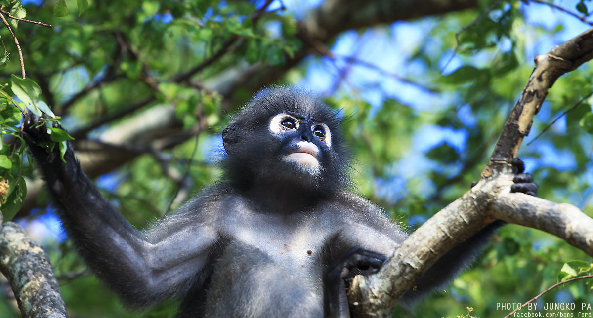 ต้นอะไรไม่รู้ เห็นค่างแว่น แกะผลมากินกันอย่างสบายอารมณ์เลย