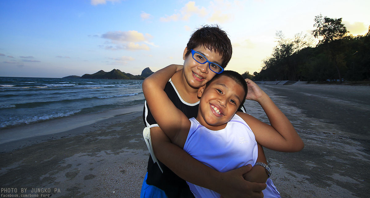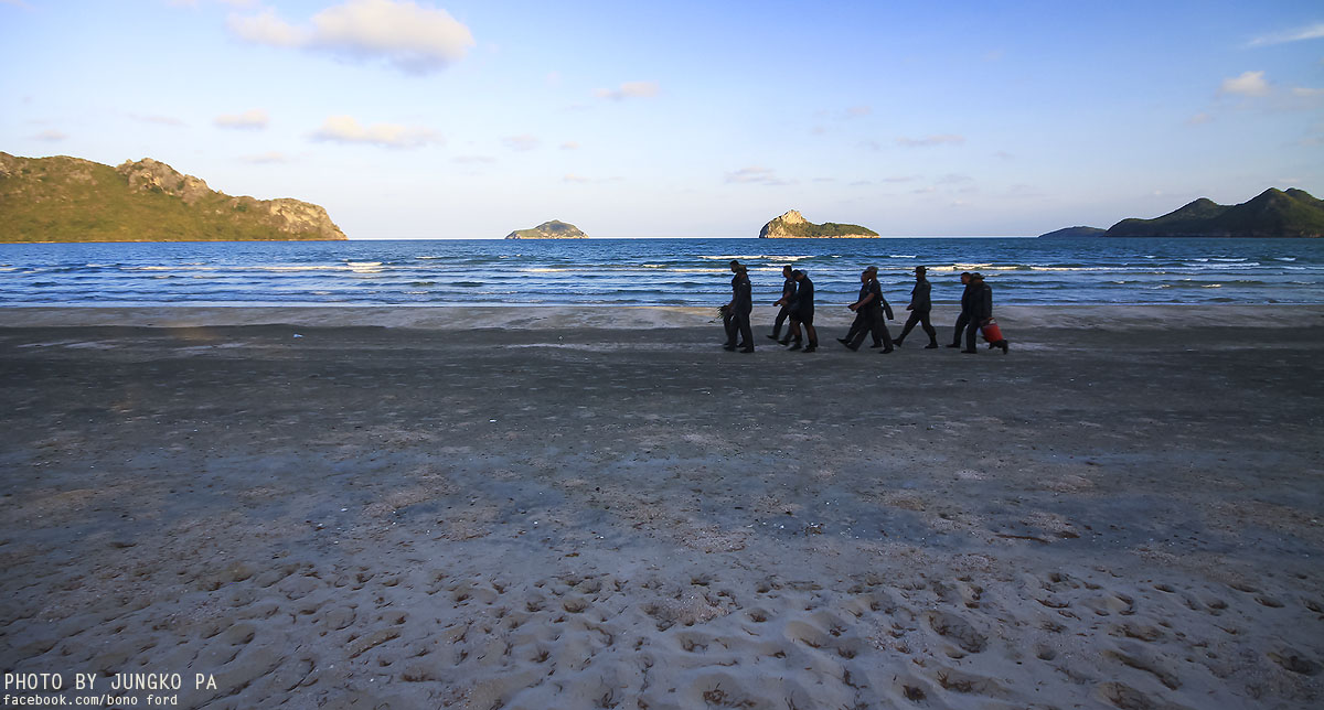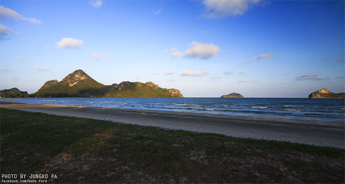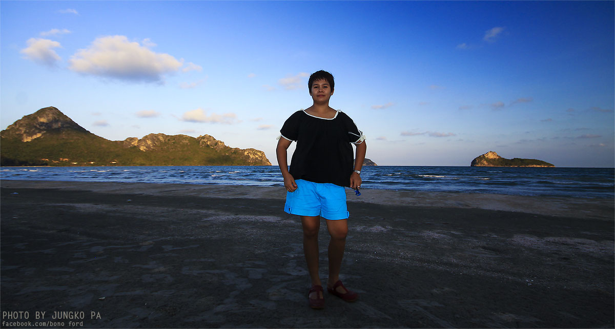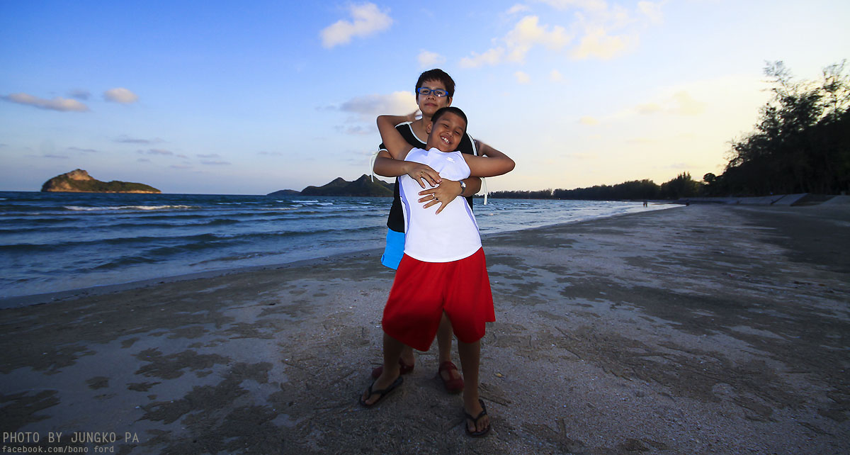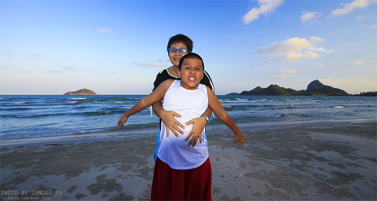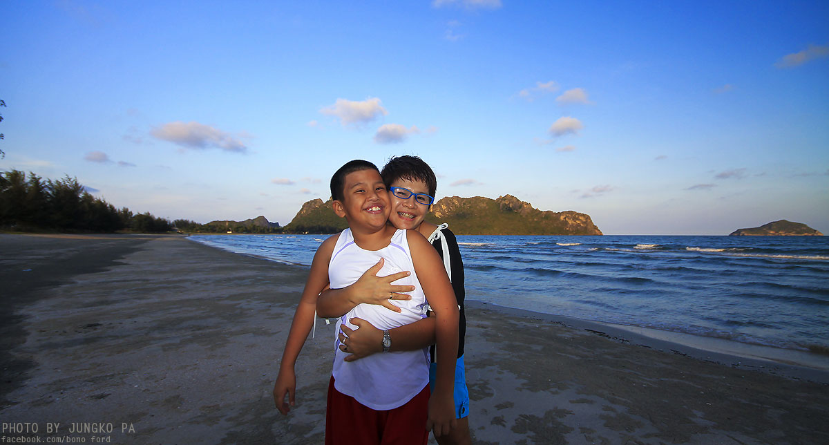 ขับรถออกจากกรุงเทพ มาประมาณ 300 กว่ากิโล หลังจากหาอาหารอร่อยๆ มื้อเที่ยงทานที่เพชรบุรีแล้ว เราตรงดิ่งมาที่ประจวบเลย บ่ายกว่าๆ นั่งเล่นหน้าที่พักริมหาดทราย สบายสุดๆ ไม่เหนื่อยมาก เช็คอินเสร็จแล้วเราพาเด็กๆ มาหาเพื่อนของพวกเขากันที่เขาล้อมหมวก