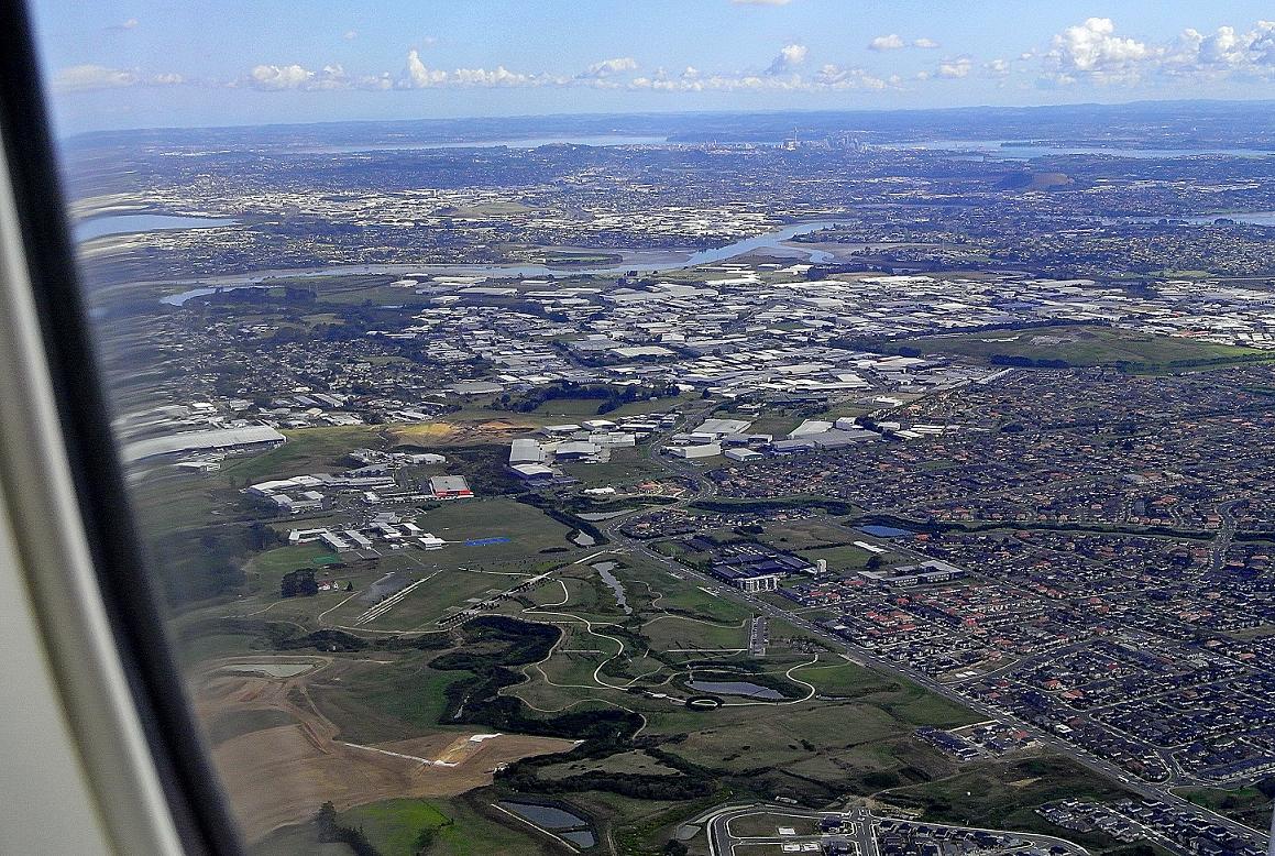 เมืองAucklandเบื้องล่าง แต่จุดหมายเราอยู่ที่Christchurch เกาะใต้ต้องไปต่อเครื่องกัน