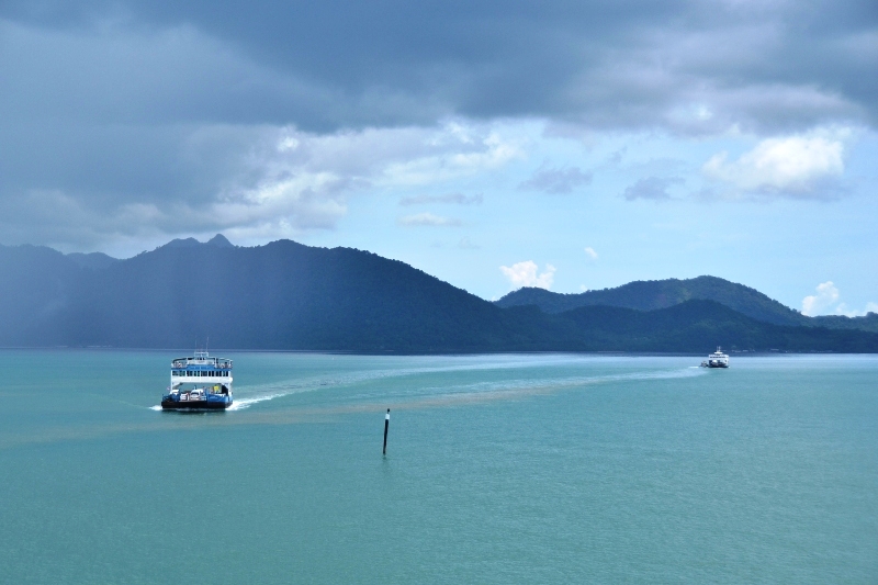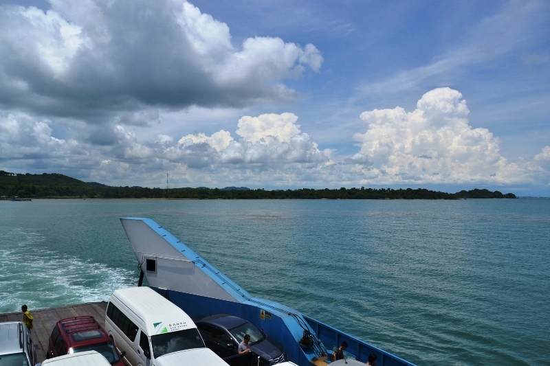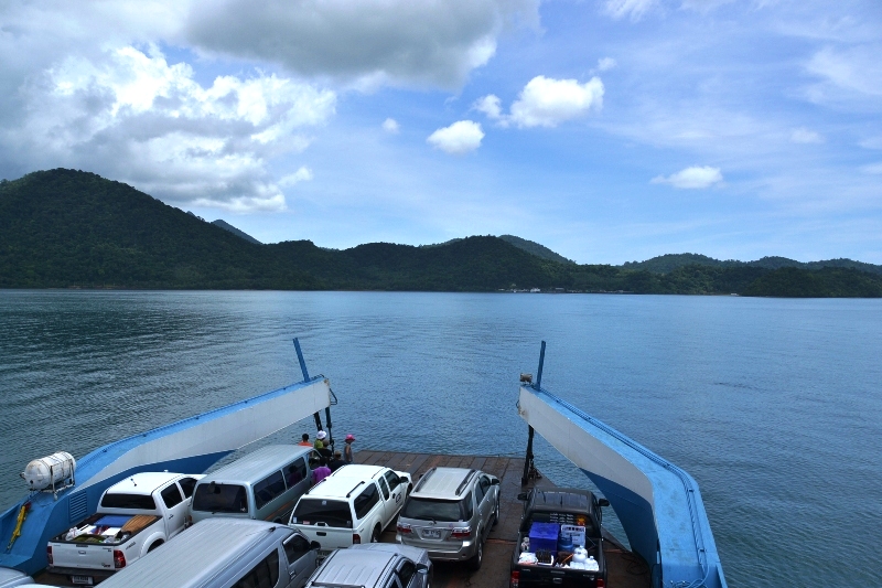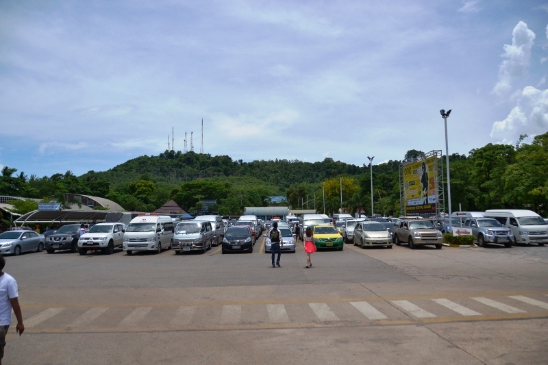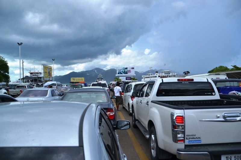 รถรอที่ท่าเฟอรรี่ อ่าวธรรมชาติ เยอะมากสำหรับ วันหยุด 3 วันครับ