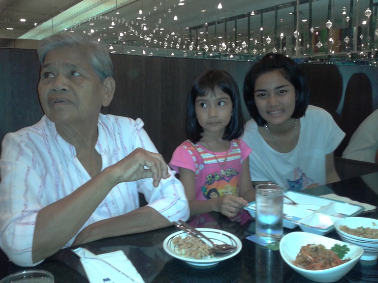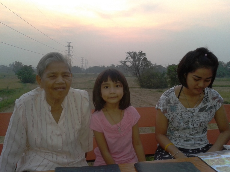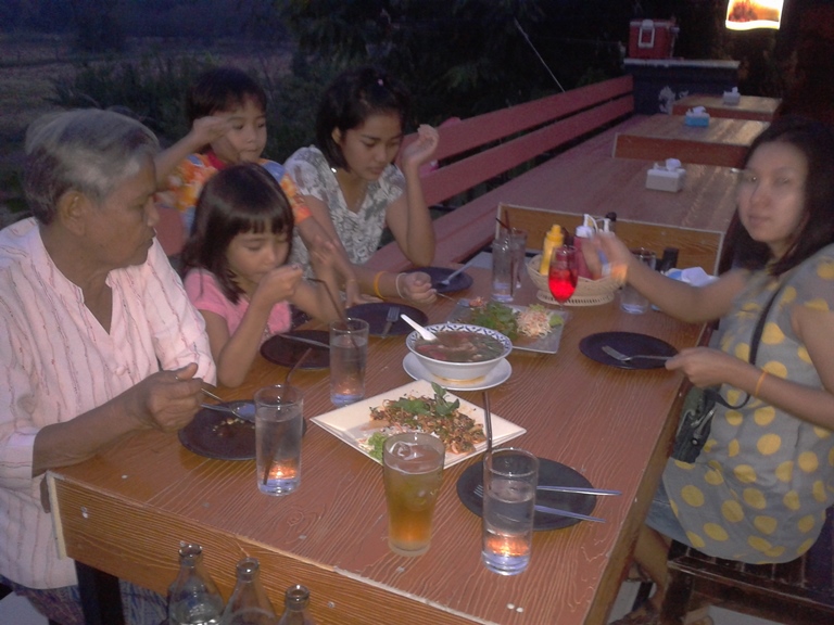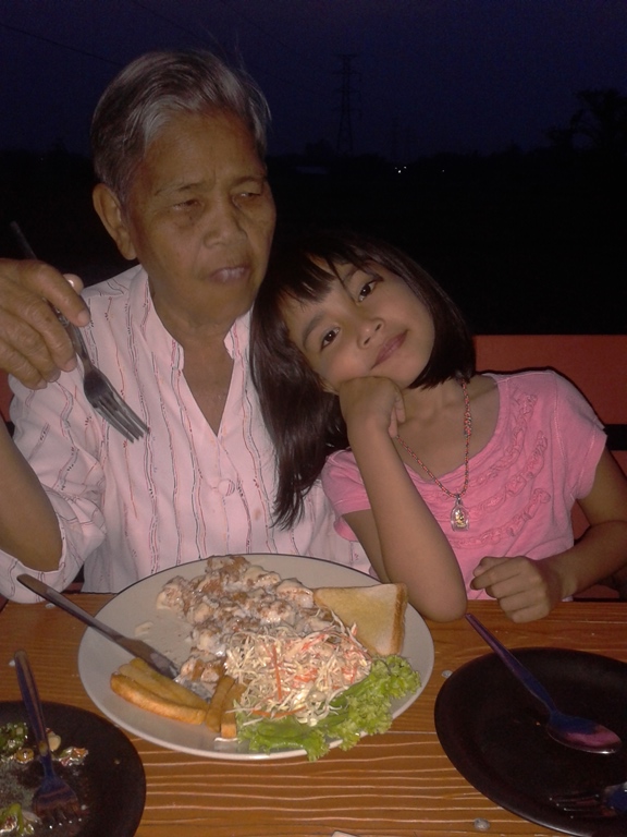 รับจากกรุงเทพมาตอนเย็นพาย่าเจ้าบูดู มานั่งกินร้านเสต็กข้างบ้าน สั่งสเต็กปลามาให้กินไม่รู้ชอบไม่ชอบ แต่คงมีความสุขได้อยู่กับลูกกับหลาน